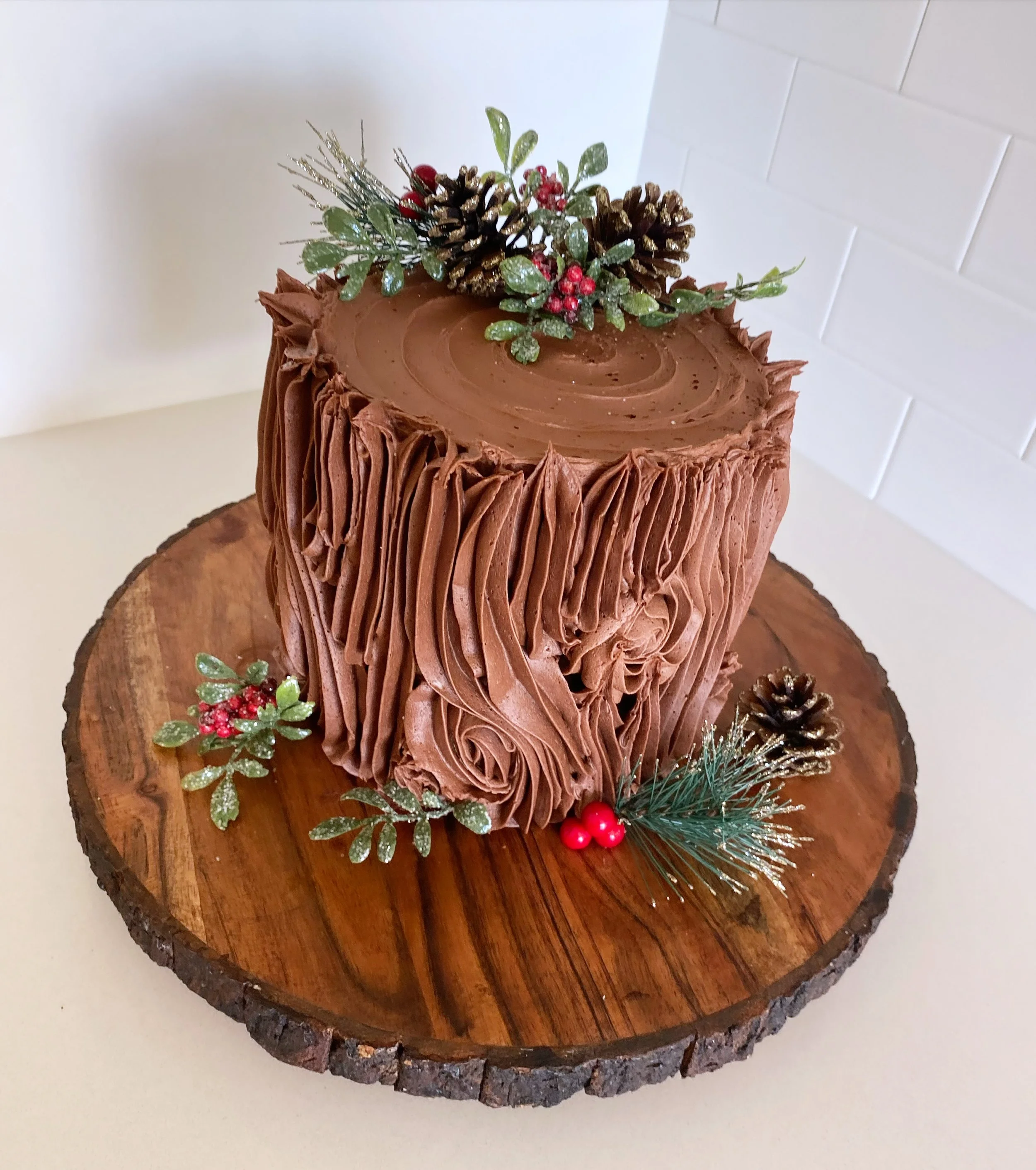 Layers of either vanilla or chocolate cake layered with creamy, rich chocolate buttercream and filled with silky chocolate ganache. Topped with Christmas trimmings and dusted with powdered sugar snow. Packaged beautifully in a clear box and tied with Christmas ribbon. 5" (serves 6-8) ~ $60 / 6" (serves (8-12) ~ $80 / 8" (serves 16-25) ~ $105